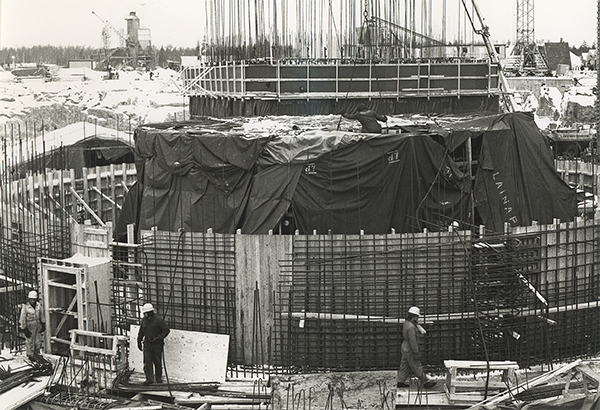 Työtaistelut ja reaktorirakennuksen tulipalo pidensivät rakennusaikaa Olkiluodon ensimmäisen ydinvoimalaitosyksikön työmaalla on edetty reaktorin suojarakennuksen rakennusvaiheeseen.