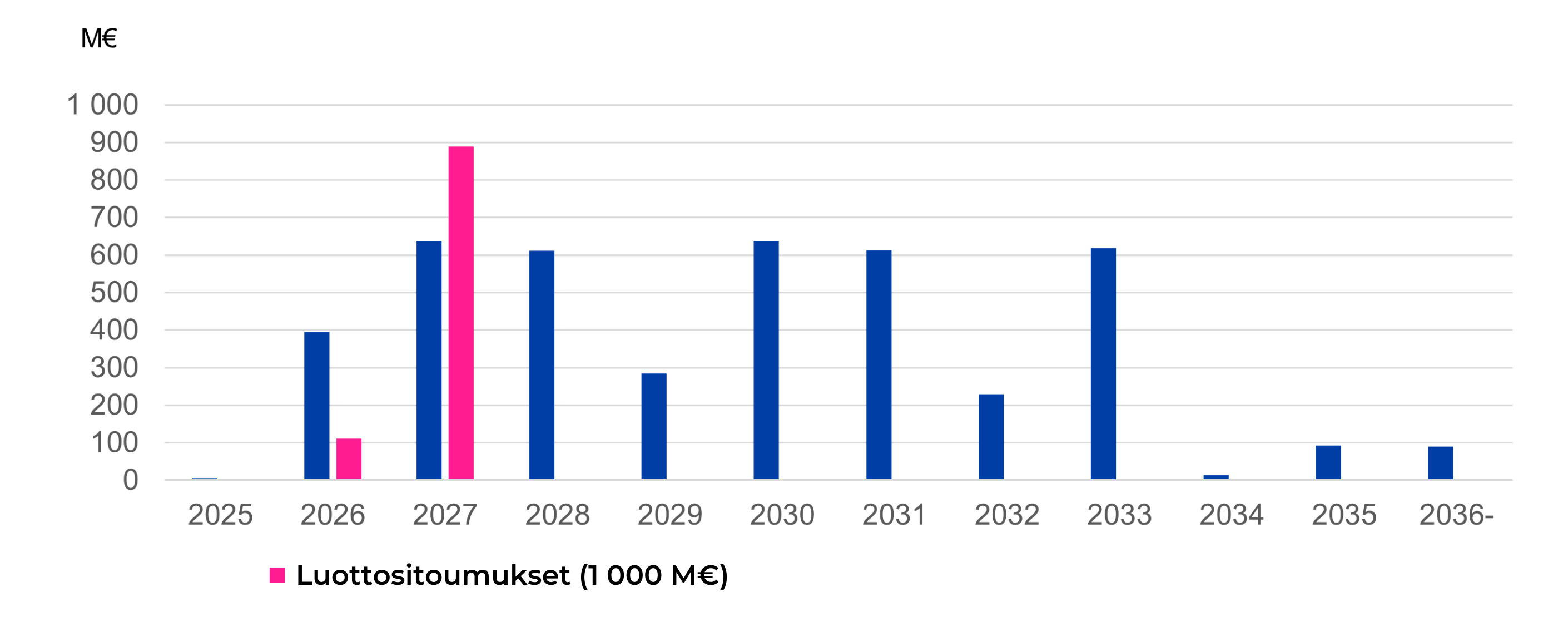 TVO:lla oli 30.9.2025 nostamattomia luottositoumuksia 1 000 miljoonaa euroa.