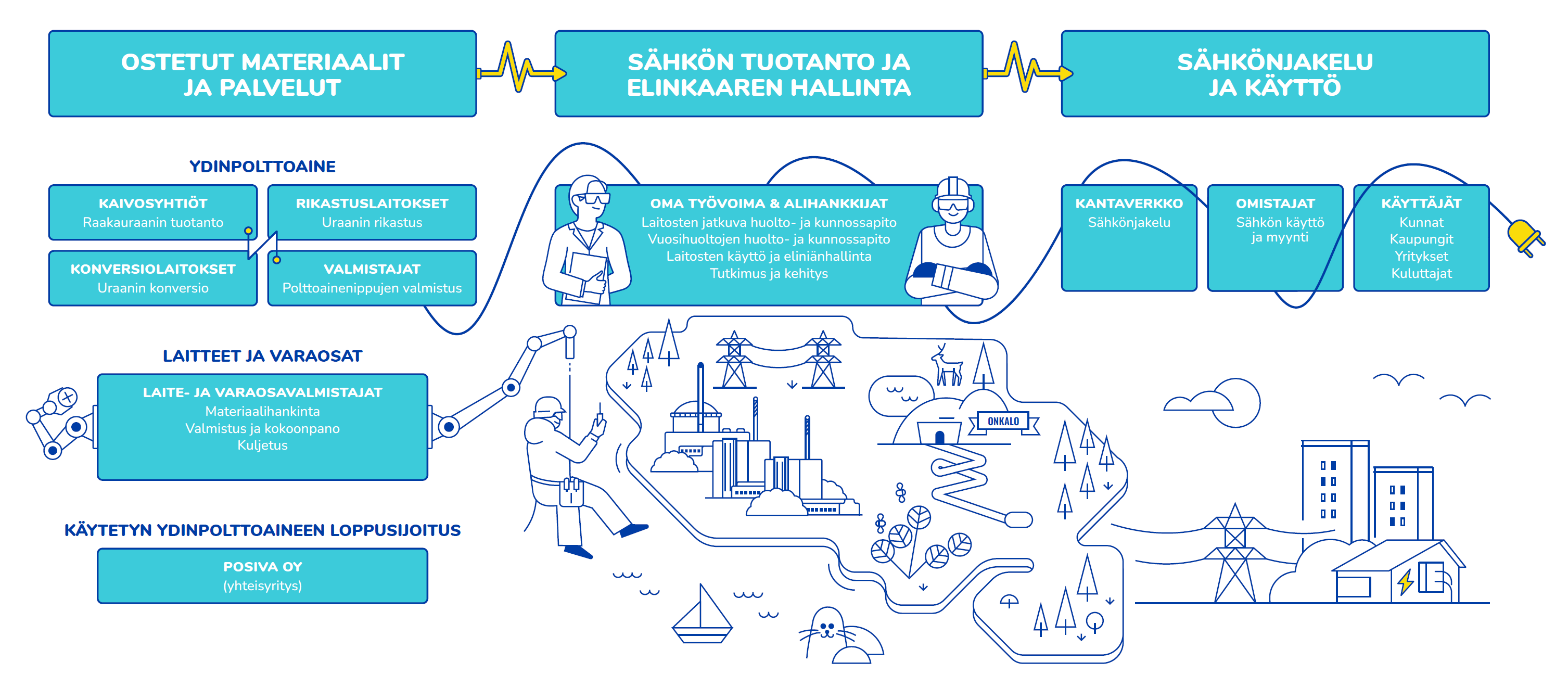 Tuotamme sähköä kestävällä tavalla huomioiden koko arvoketjumme uraanin louhinnasta sähkön kuluttamiseen asti.